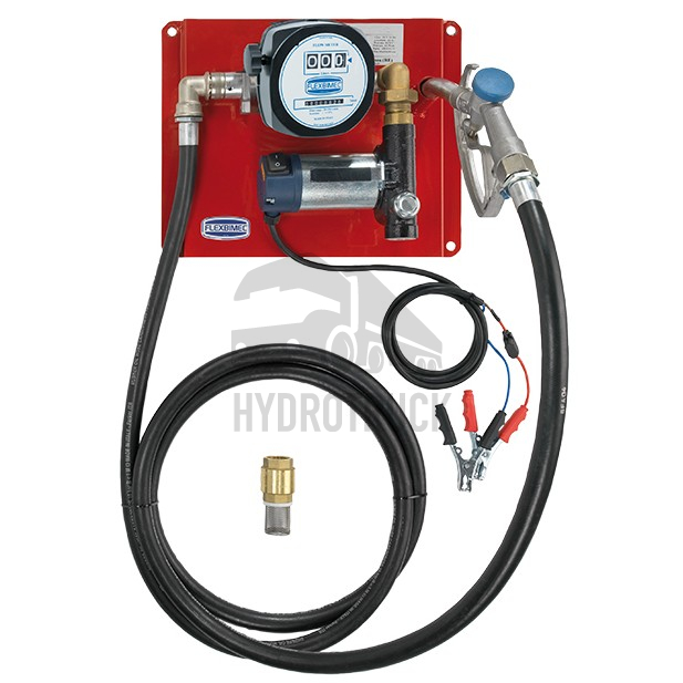 Skládá se z mechanického průtokoměru (č. výr. 2866), samonasávacího elektrického lamelového čerpadla (č. výr. 6252 nebo 6254) s vestavěným obtokovým ventilem a vstupním sítkem, vypínače ZAP/VYP, 2m kabelu s krokosvorkami pro připojení baterie, sacího ventilu s filtrem (č. výr. 6647), 4m pryžové výtlačné hadice O 3/4” a ruční hliníkové pistole.